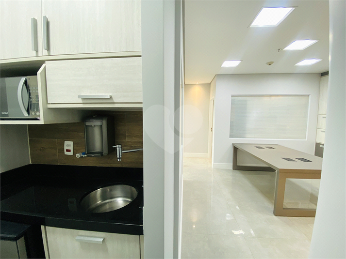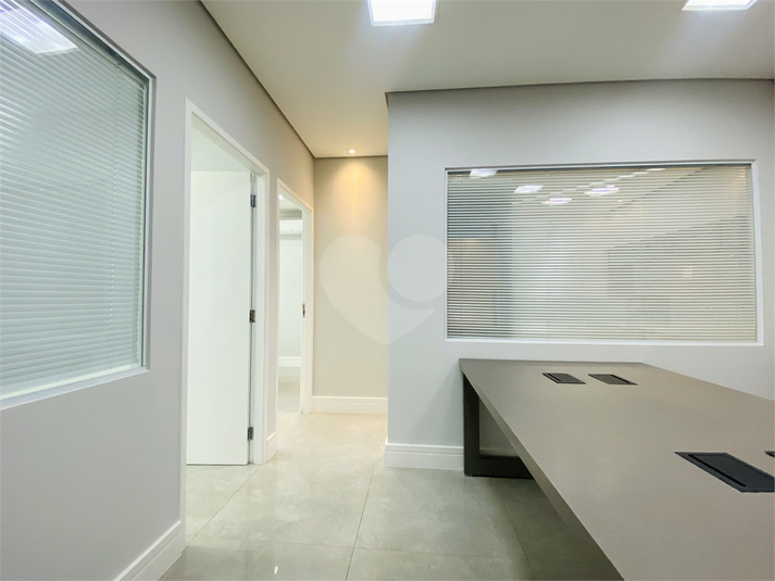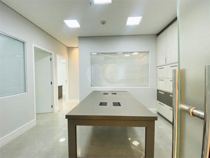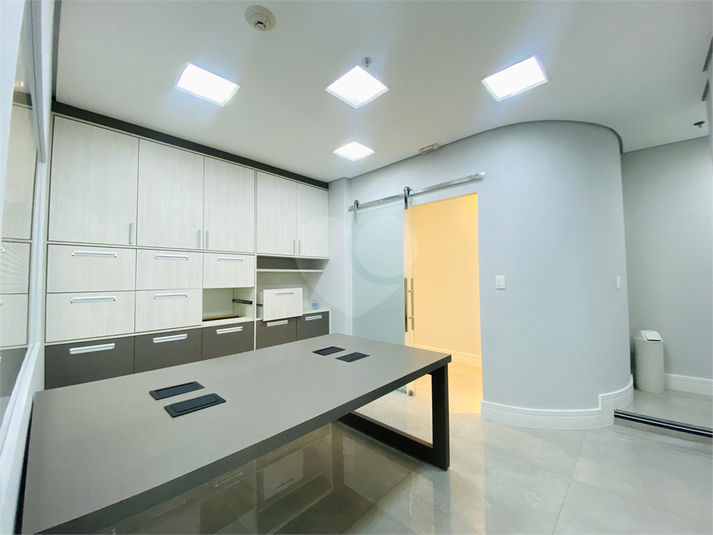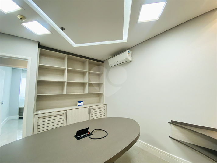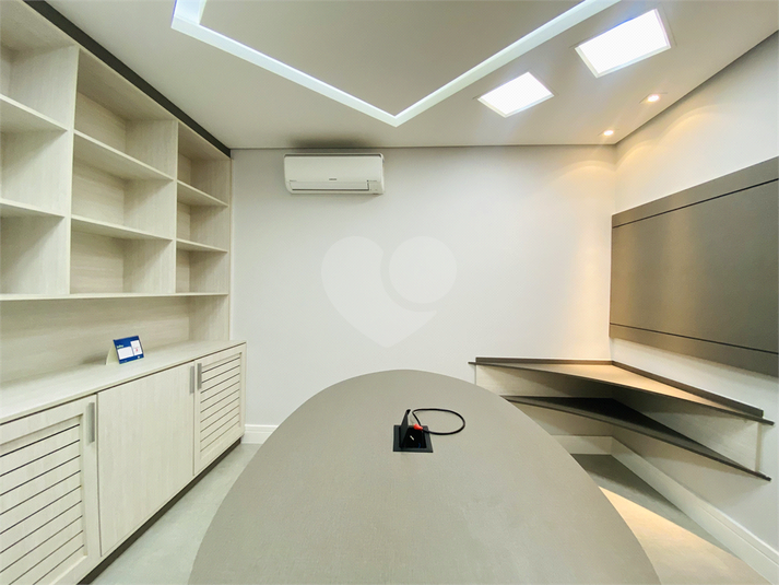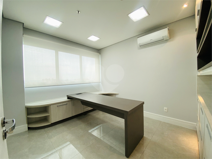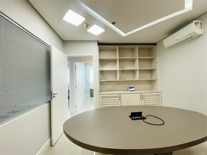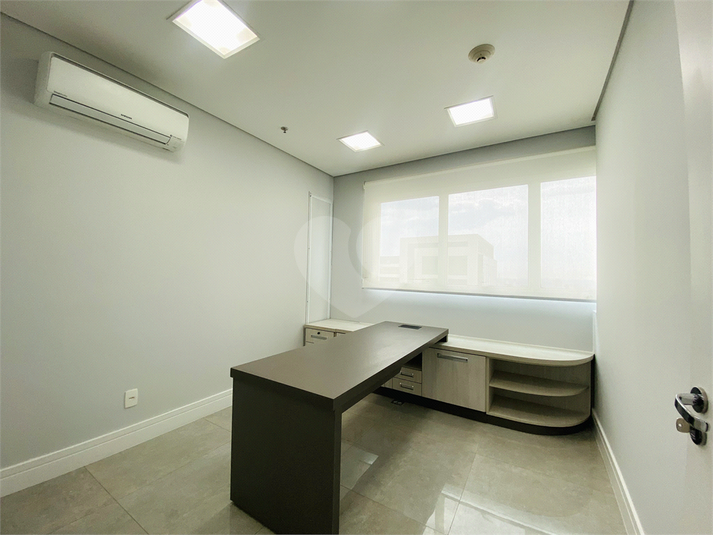 São 61 m² de área útil, distribuídos em quatro ambientes funcionais: duas salas privativas, sala de reunião, sala com estações de trabalho e copa equipada com micro-ondas, filtro de água e frigobar. O espaço possui ainda lavabo, móveis planejados em todos os ambientes, ar-condicionado, projeto de iluminação moderno e pontos de rede já instalados.